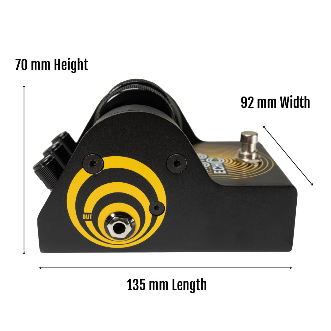Most delay pedals are static in nature—you can only switch them on or off with a footswitch while you play. The Roto-Echo features a built-in expression wheel that lets you shape parameters in real time with your foot as you play. You can sweep the feedback, adjust the blend, and modulate the delay time—all while keeping your hands free to play your instrument. This opens up creative possibilities that are usually limited to studio production.